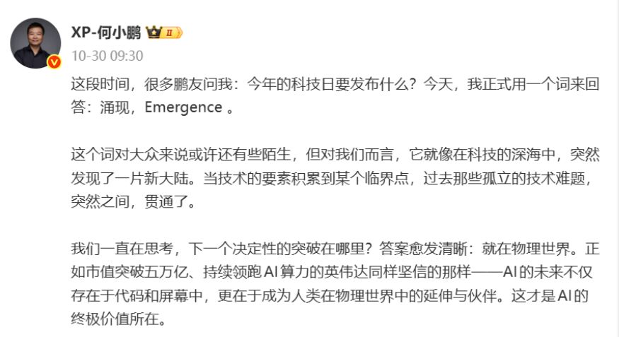 小鵬官方今天在微博發文,預熱旗下首款Robotaxi汽車,將于明天15:00在廣州舉辦的小鵬科技日正式亮相。