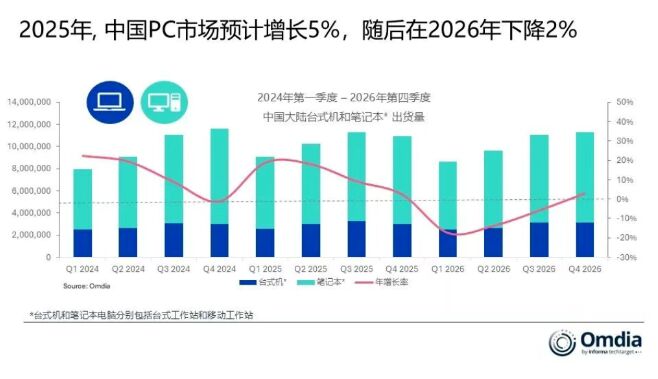 根據Omdia發布的數據,臺式機(包括臺式工作站)出貨量達到330萬臺,同比增長8%,主要由商用市場強勁需求推動,該市場出貨量增長了9%。筆記本(包括移動工作站)出貨量維持在800萬臺,基本與去年持平。
