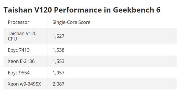GeekBench 6測試數據庫里第一次出現了華為泰山V120 CPU架構的跑分成績,單核性能已經基本追上AMD Zen3架構,證明和世界先進水平已經沒有太大的差距。
