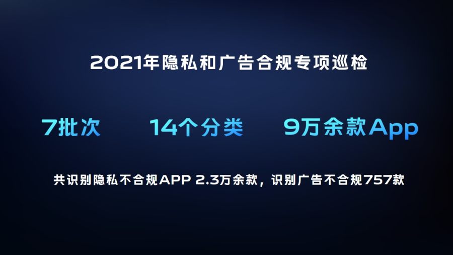 2021年以來,vivo應用商店單獨針對隱私和廣告合規的巡檢專項,共發起7批次巡檢,覆蓋了9萬余款APP。對檢出存在隱私和廣告不合規問題的APP,vivo應用商店根據法律法規、平臺《應用違規處罰規則》優先通知整改,并對問題嚴重的APP采取應用下架、應用凍結等處罰措施。