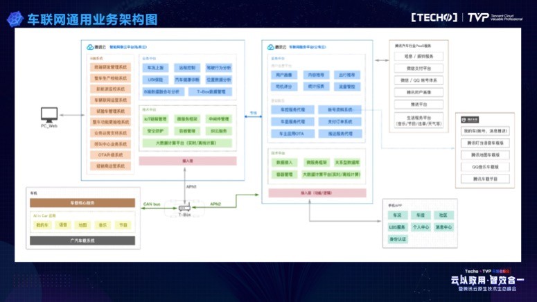 當前汽車產業技術發展的趨勢主要可以概括為“新四化”,即電動化、智能化、網聯化、共享化。在這個過程中,車聯網是萬里長征的第一步,騰訊云在車聯網方向提供了一個通用的業務架構能力,利用分布式云的模式實現B端、C端的全連接。