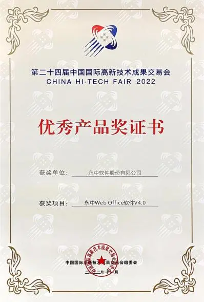 11月16日,第24屆中國國際高新技術成果交易會——智慧城市展(簡稱“高交會”)在深圳會展中心開幕。永中軟件攜數字辦公創新成果亮相高交會6號館,吸引參展觀眾超萬人次,為本屆高交會在辦公軟件領域的技術動態樹立了新的風向標。會上,永中軟件自主產品永中Web Office軟件V4.0榮獲高交會“優秀產品獎證書”,綜合實力得到評審專家的一致認可。