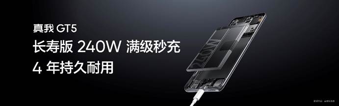 真我GT5 延續此前240W滿級秒充規格,滿級之上再升級。真我GT5搭載SUPERVOOC S全鏈路電源管理芯片,可實現目前行業最高的99.5%的放電效率。240W滿級秒充搭配99.5%的放電效率,真我GT5實現行業充放電雙極限。與此同時,真我GT5支持長壽版 240W 滿級秒充,可以實現4年耐久使用。