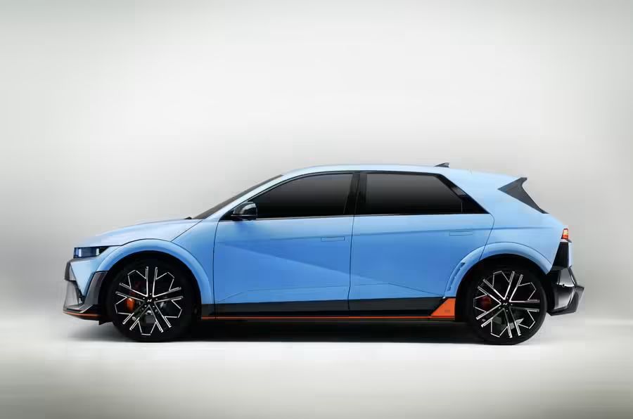 IONIQ 5 N 的外觀也與普通版有很大區別,更低、更寬,長度增加了 80mm,寬度增加了 50mm;而且前保險杠也經過了重新設計,呈現出更具賽道風格的外觀,增加了主動進氣格柵來冷卻剎車。