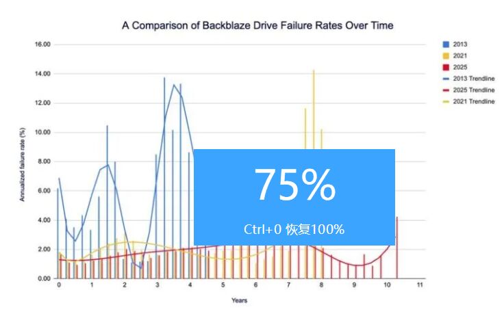 自2013年以來,云備份與存儲服務公司Backblaze持續追蹤其數據中心內硬盤驅動器(HDD)的年化故障率(AFR)。經過十余年的數據積累,該公司得出了一個明確結論:現代硬盤“使用壽命更長”,且出現的錯誤也更少。